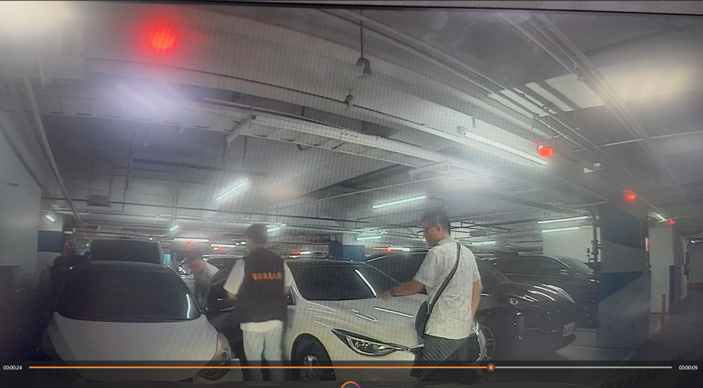 警方在停車場內逮捕駕自小客車內設「偽基站」發送詐欺簡訊的王姓男子。翻攝畫面