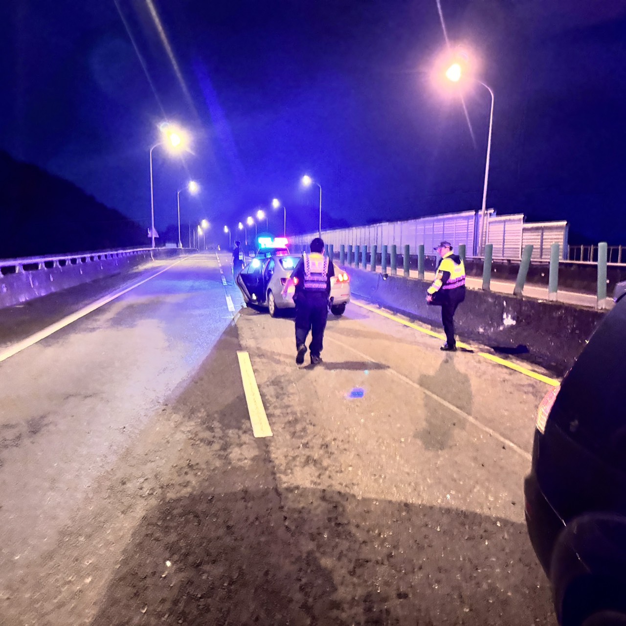 員警抵達車禍現場調查處理。翻攝畫面