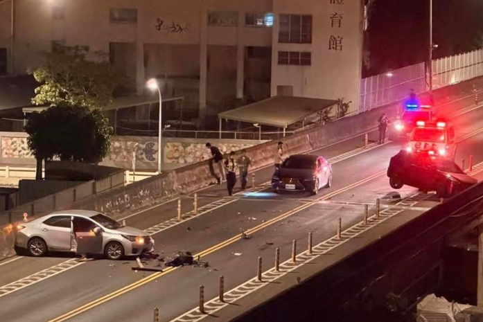 桃園市平鎮區中豐陸橋兩車對撞。翻攝畫面