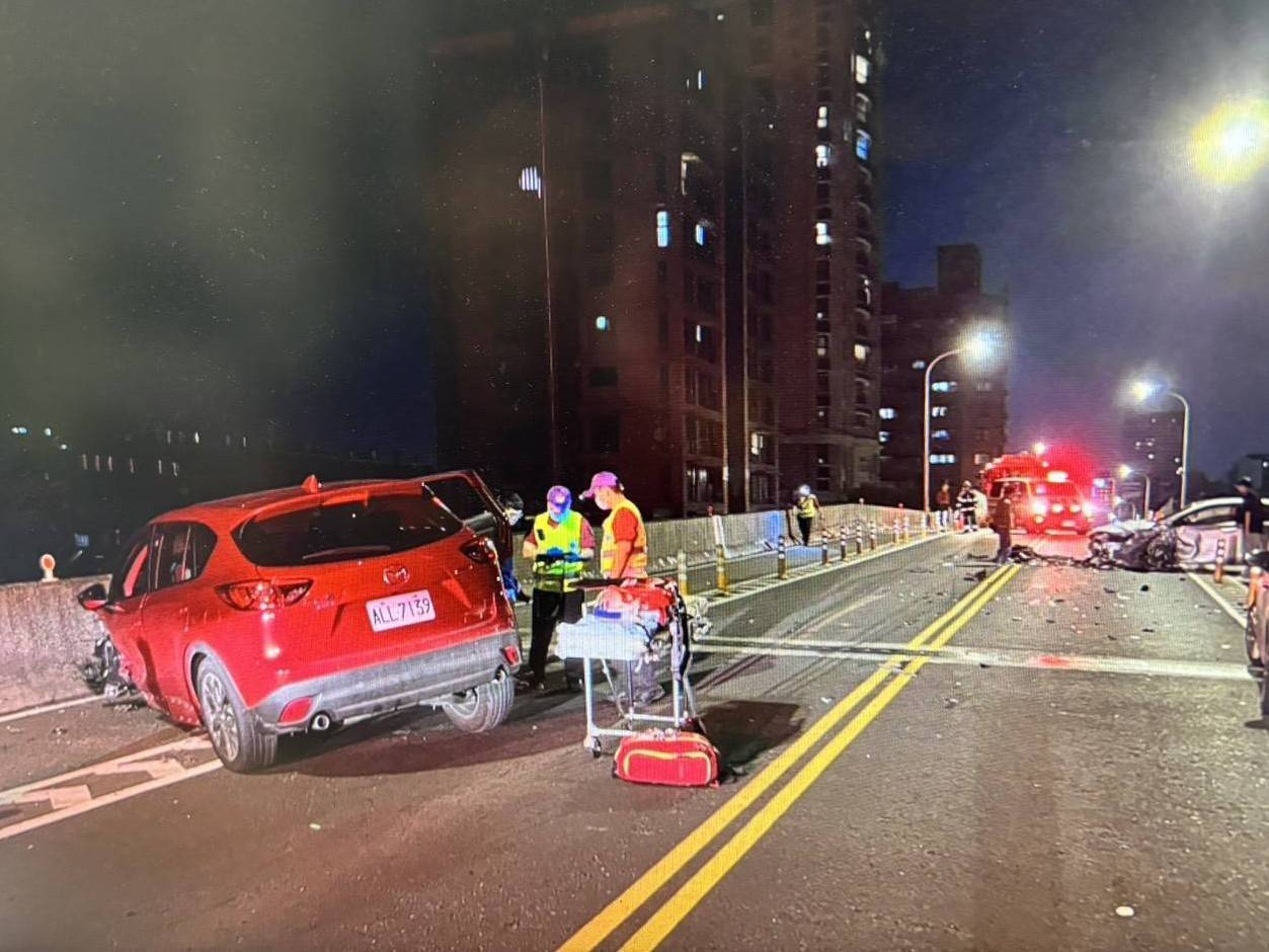 中豐陸橋因兩車對撞車禍一度封閉。翻攝畫面