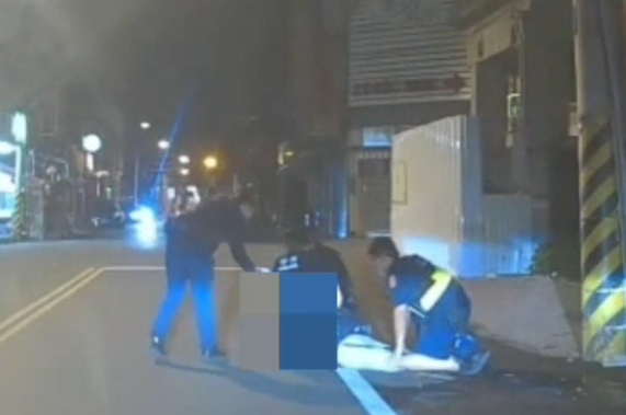 員警發現持刀男子掏槍喝令趴下。翻攝畫面