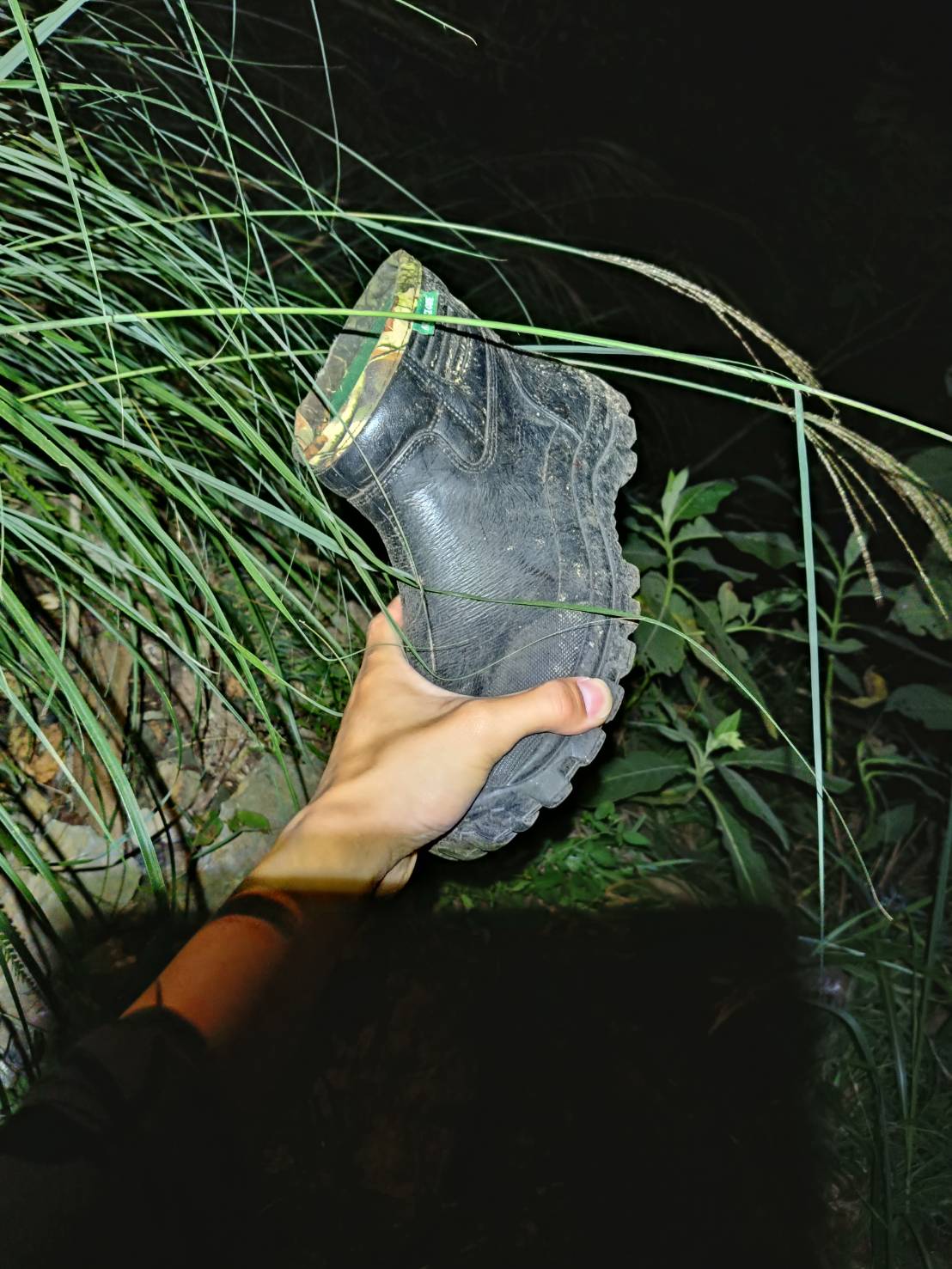 搜救人員發現失聯男登山客穿著的雨鞋。翻攝畫面