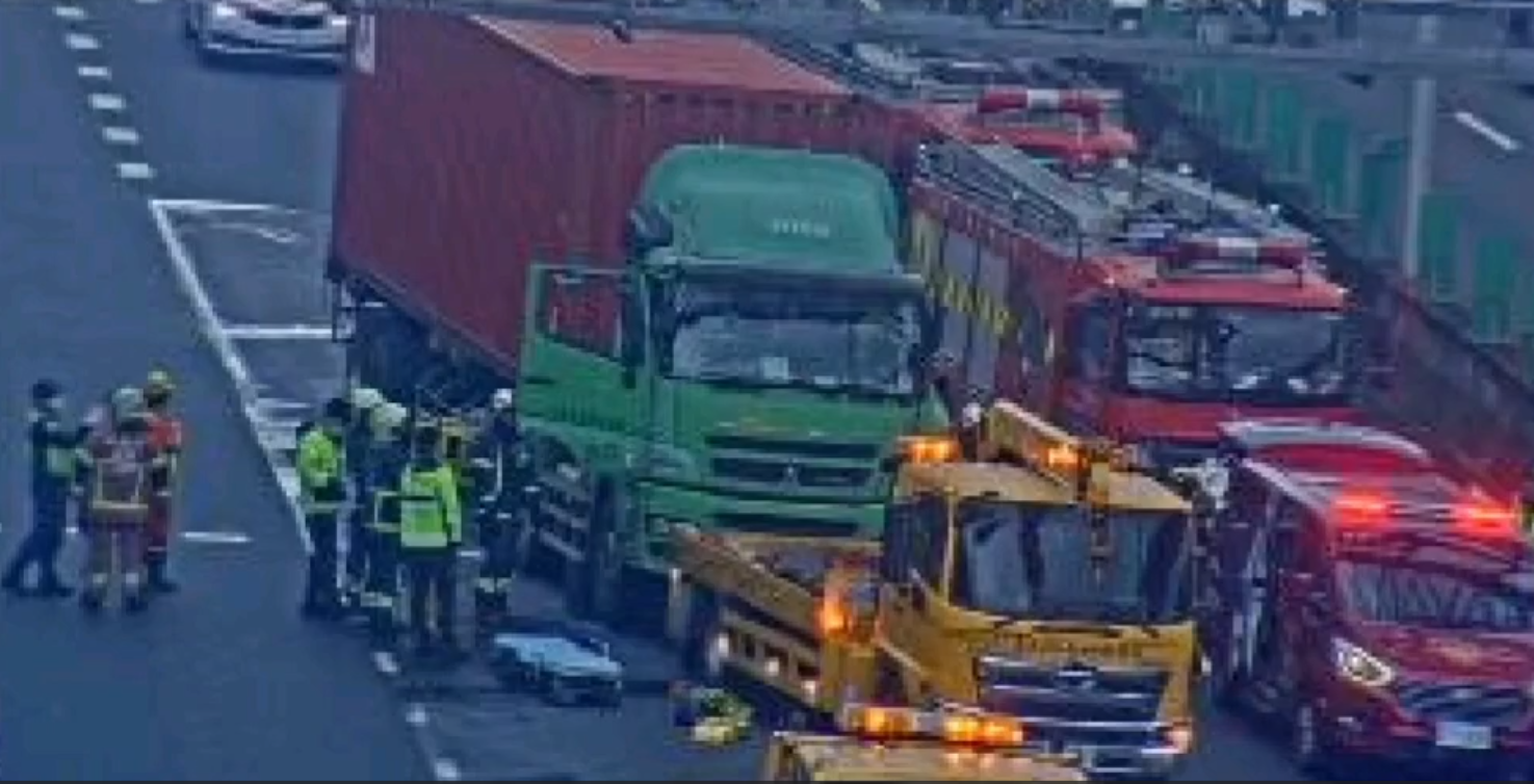 【Lai傳媒、記者爆料網/周庭慶/新北報導】今(11)日14時50分,國道警察第一大隊接獲通報,國道1號南向33.9公里五股路段有2部大型車事故,有1名駕駛坐於車內未下車,立刻調派巡邏車前往處理,並通知119派救護車、消防車,警消到場後發現坐於貨櫃車內的駕駛疑似患病,立即破窗將駕駛人移出送林口長庚醫院。