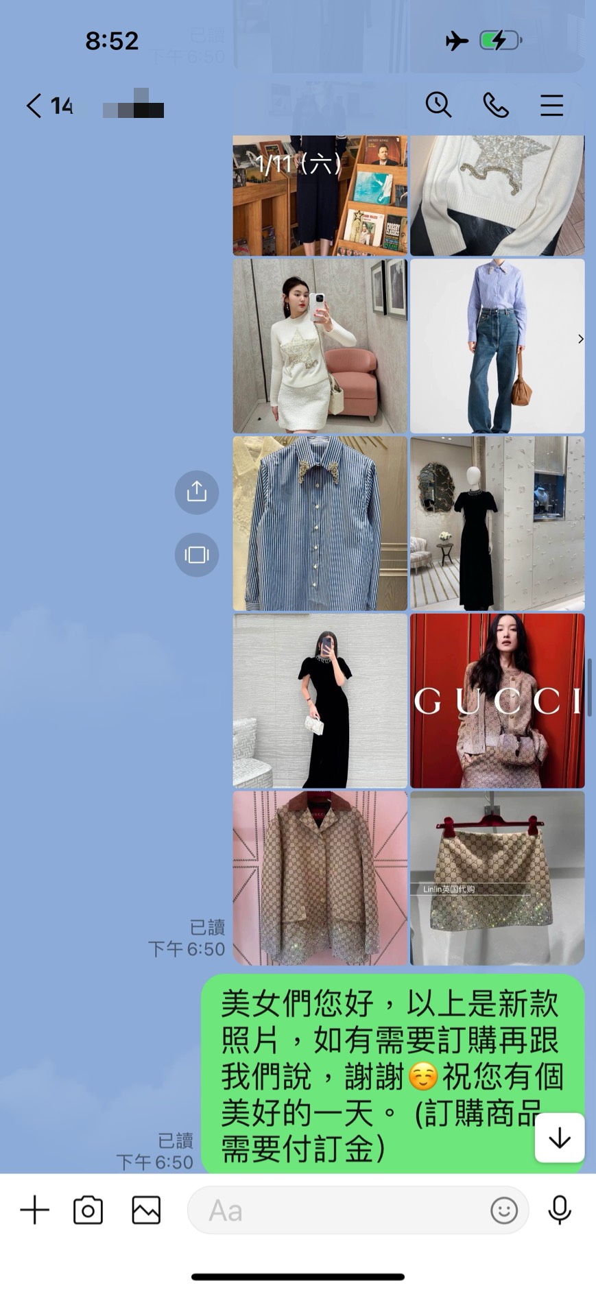 不法集團透過通訊體傳送仿冒精品圖片供客人選購。翻攝畫面