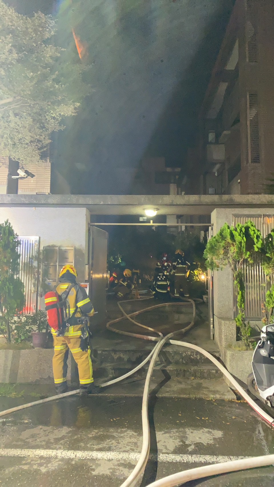 消防隊員到場灌救。翻攝畫面
