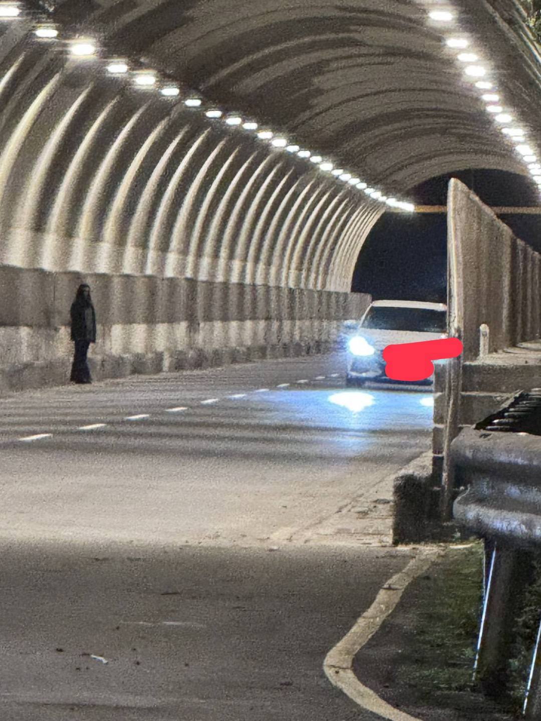 當晚 6 點多,一名賴姓騎士騎進隧道時,看到前方突然出現一個黑影,回程又瞄到一名全身黑衣、黑褲、長髮披肩的女子站在路邊,簡直像恐怖片從螢幕走出來。賴男嚇到整晚睡不著,隔天疑似精神不濟摔車受傷,氣得向警方報案。