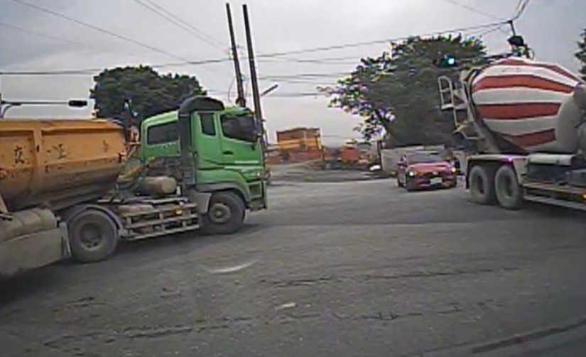 南投縣名竹大橋發生砂石車與機車相撞,機車女騎士一度受困砂石車底下的車禍。翻攝畫面