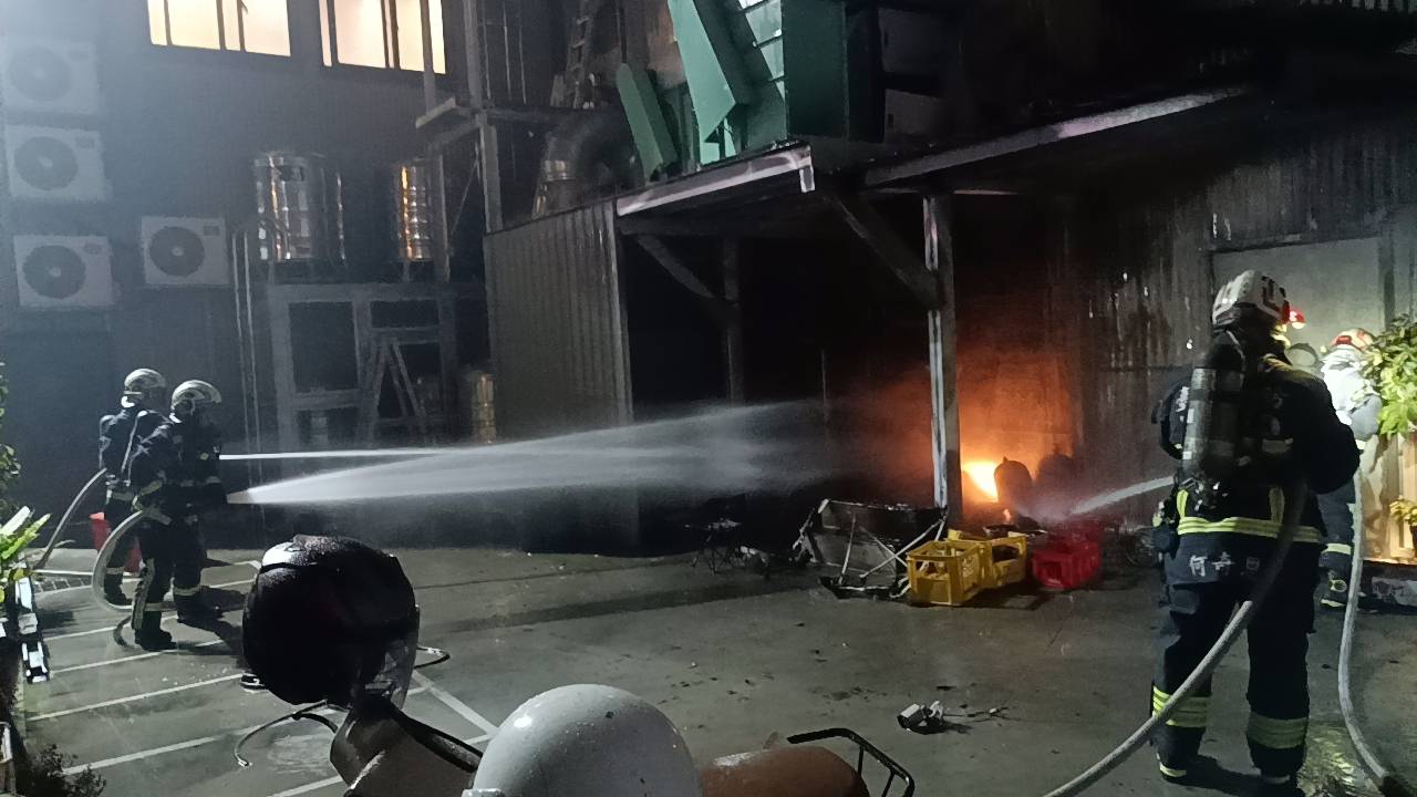 消防隊員抵達發現起火的是2樓鐵皮結構建物,1樓後側屋外火煙竄出,火勢於18時30分控制、18時40分撲滅。現場疑似員工更換瓦斯桶時不慎引發火勢,有1名男性員工(35歲的臉部輕微燙傷,處置後由救護車送往中國附醫診治;另消防人員使用雙節梯協助受困於2樓的2名員工脫困,現場燃燒1樓戶外瓦斯桶(共5支、每支15公斤),燃燒面積5平方公尺,起火原因由火調人員調查中。