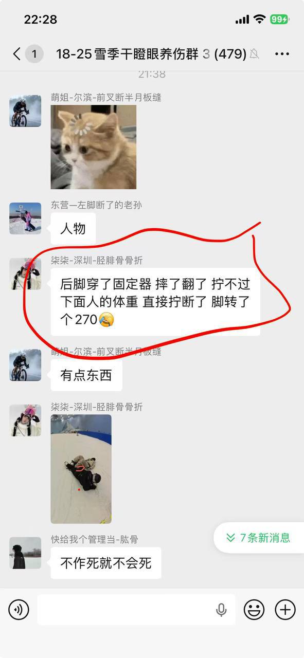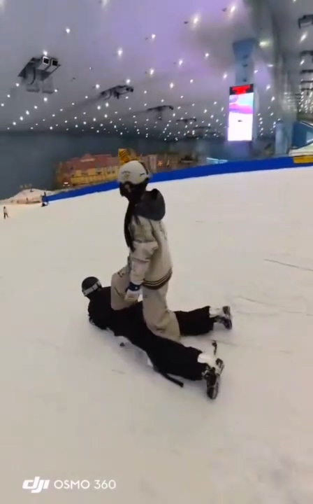 一段影片在網路上瘋傳,女子在廣州花都融創茂室內滑雪場滑雪,後腳固定在滑雪板上踩著人從上往下滑,結果失誤跌倒腳轉了270度骨折。