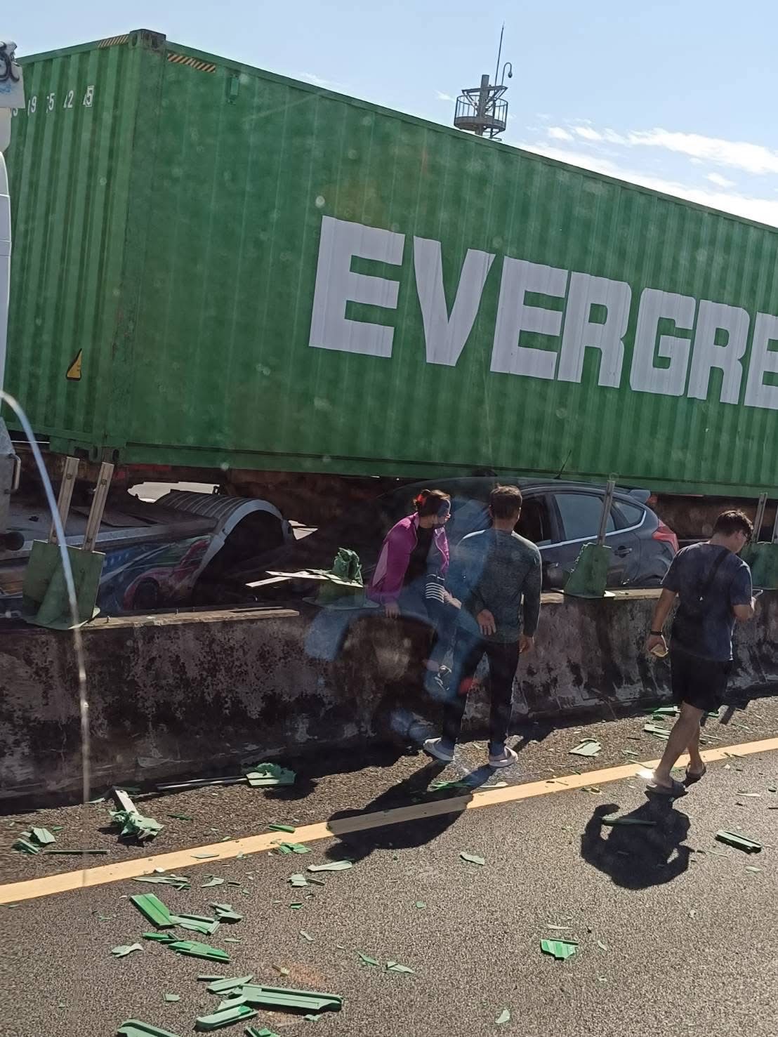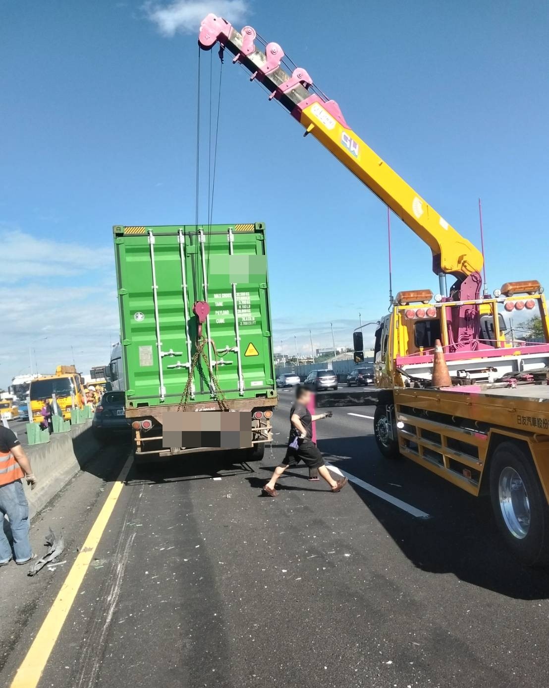 【Lai傳媒、記者爆料網/周庭慶/桃園報導】國道1號北上59.58公里北上桃園中壢路段中午1點左右發生事故!初步了解現場為貨櫃車與自小客車相撞,由於車體碎片散落至南下車道,使得雙向車流都受到影響,車速只有10至30公里,目前國道警察及高公局人員還在現場處理中。