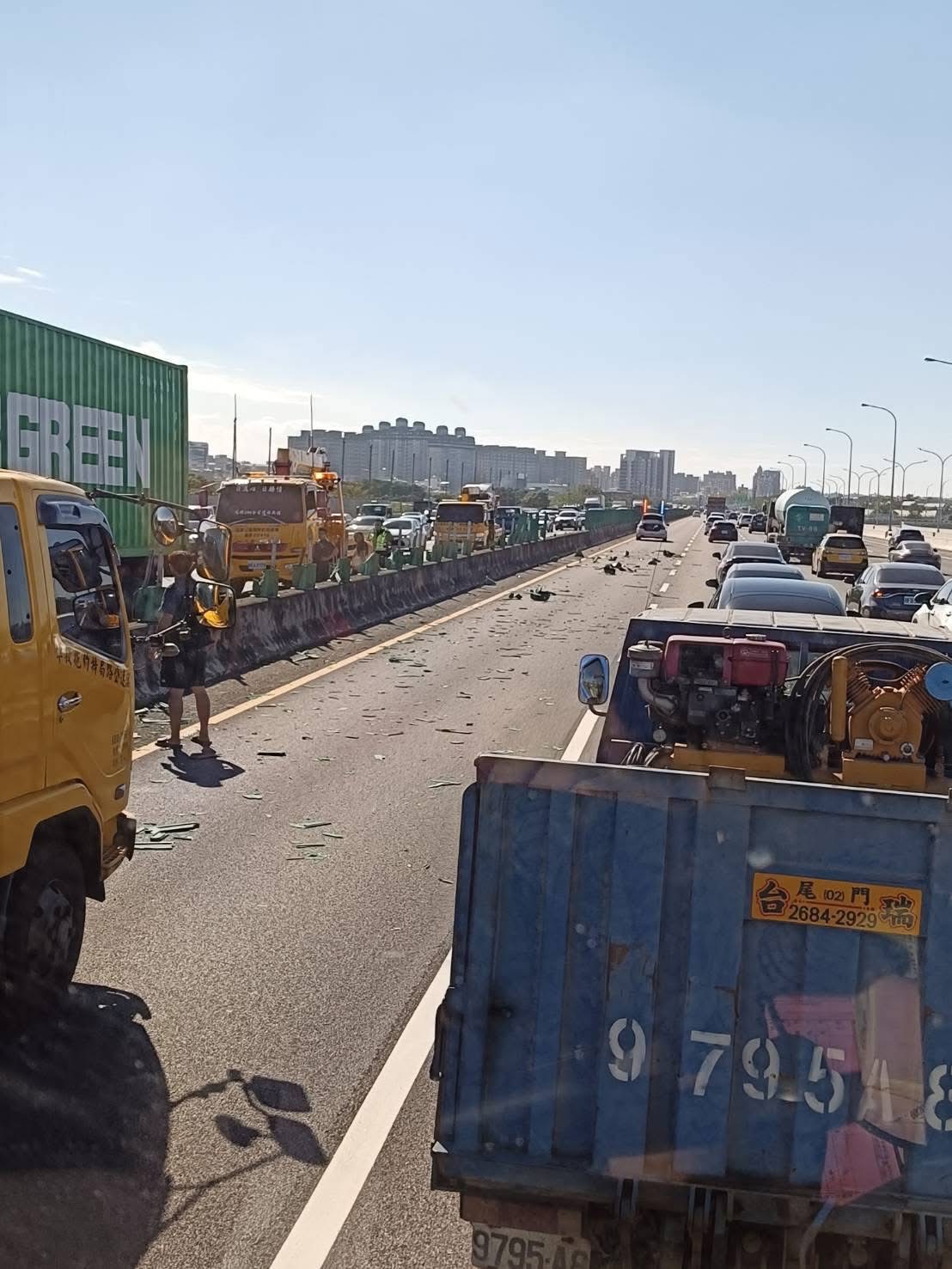 國道1號中壢路段事故雙向車流都受到影響。翻攝畫面