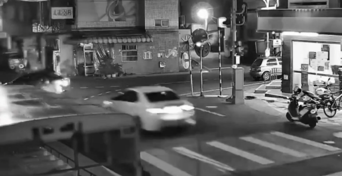 白色酒駕車轎車衝向酒駕車禍現場,造成處理車禍警員受傷。翻攝畫面