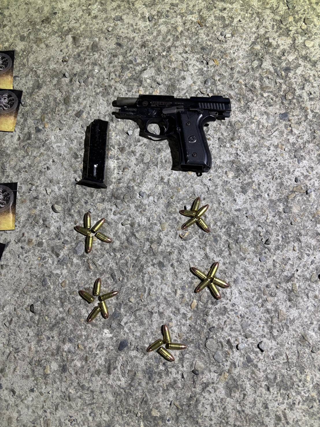 台中市警六分局獲報到場逮捕陳男,在他身上扣得大批毒咖啡包、改造手槍1支及子彈26發,接著又到其住處扣得一批毒咖啡包、愷他命、子彈17顆及空彈殼1顆,台中地檢署偵查終結,將陳男依對未滿7歲之人殺人未遂等罪嫌起訴。