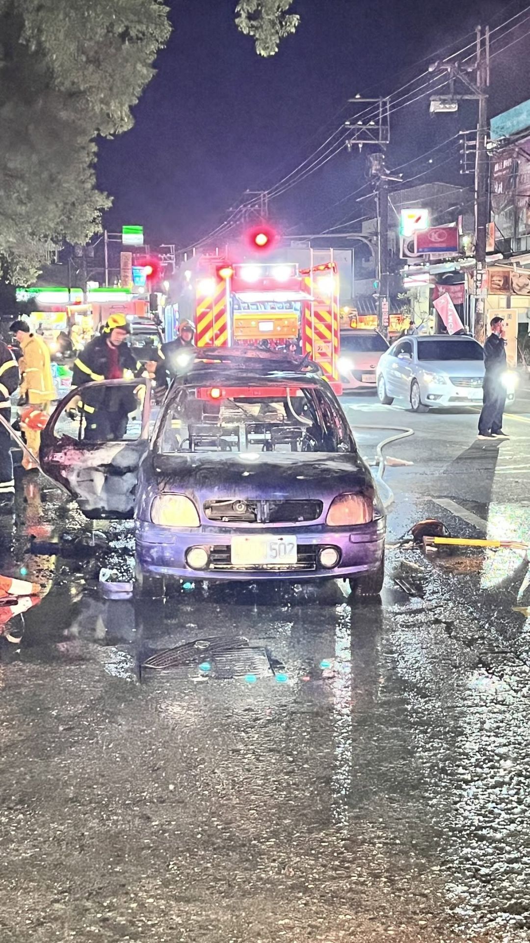 屏科大校門口火燒車火煙沖天!- 小籠包攤販用火不慎把自己車子燒了