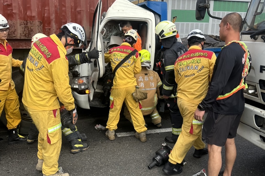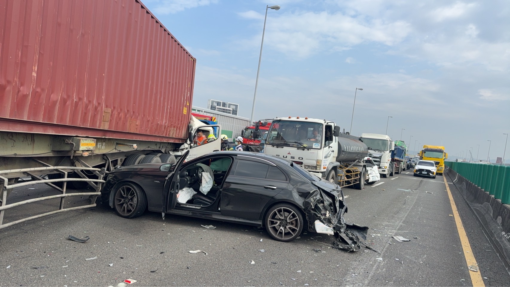 國道10號西向3.9K今(4)日上午9時許發生嚴重車禍,現場初估7車追撞,包含4大車、1小貨、2自小客,高市消防局獲報後出動特搜兩個分隊前往搶救,目前狀況仍不明朗,後方持續回堵當中,至於詳細情形還有待進一步釐清。