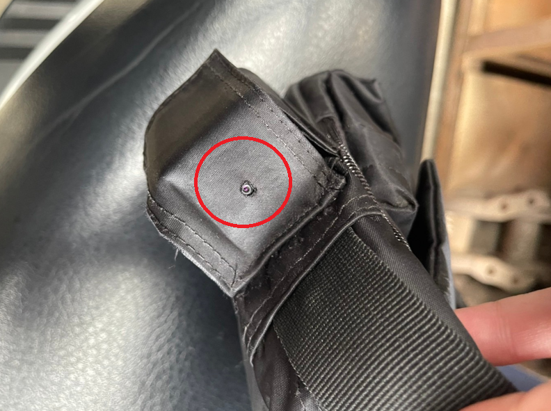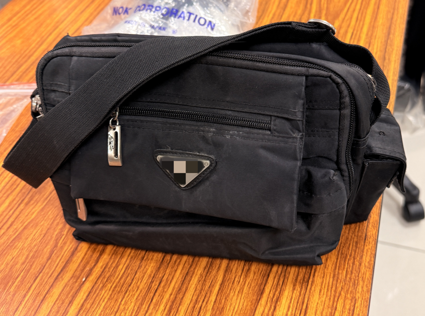 中壢偷拍狼將針孔攝影機藏在包包內,鎖定對象透過鏡頭(紅圈處)進行偷拍。翻攝畫面
