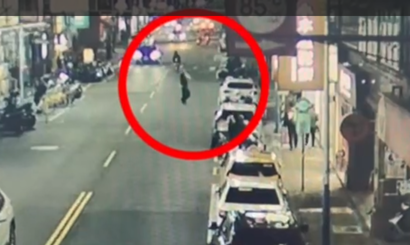 男子持刀街頭趴趴走(紅圈處)。翻攝畫面