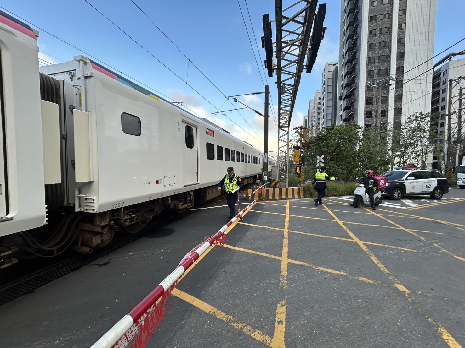 男子闖入平交道被自強號撞死,員警前往勘驗調查。翻攝畫面
