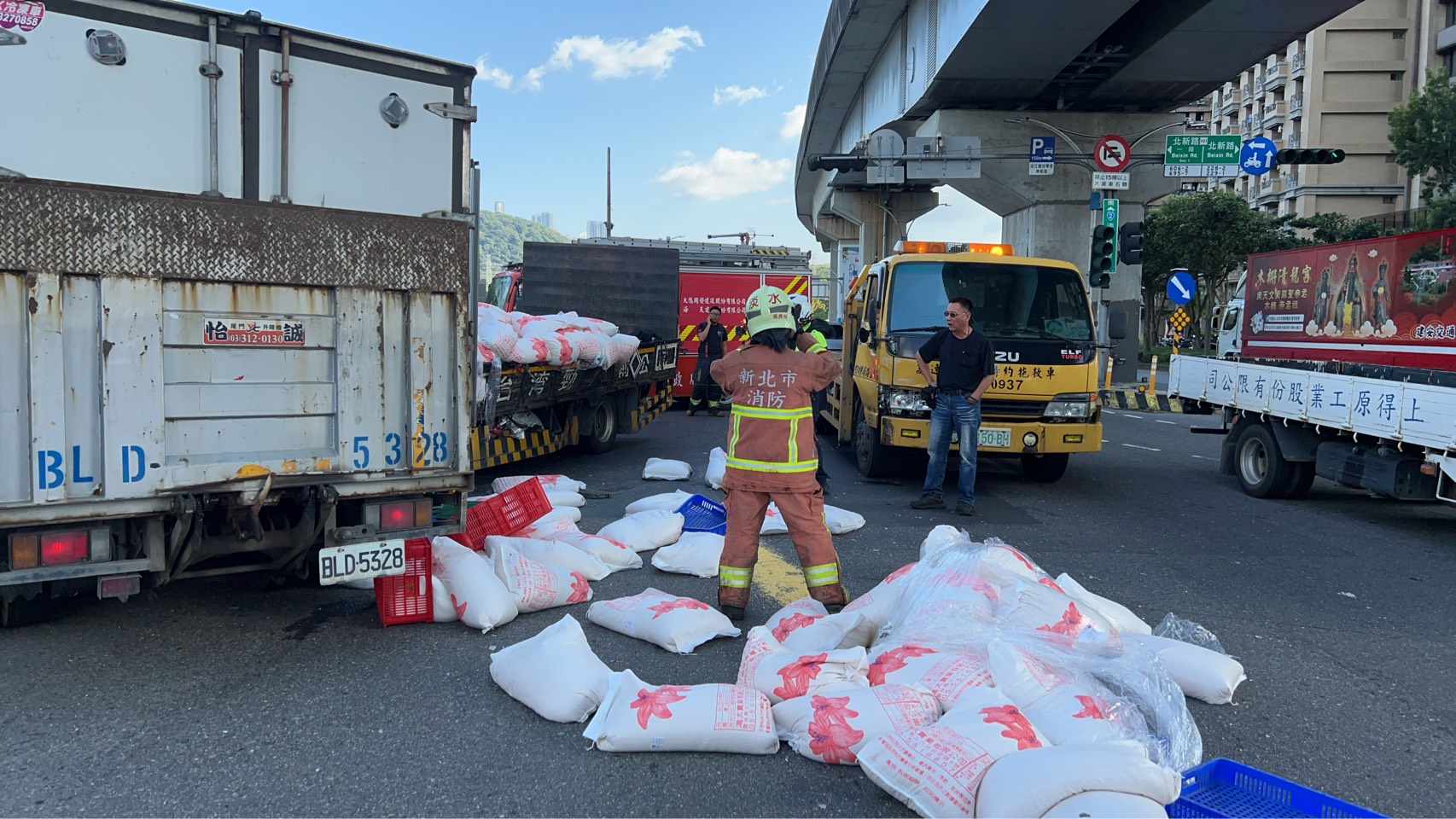 遭波及的倪姓老翁與 71 歲妻子皆受輕傷,3 人全送往淡水馬偕醫院。警方酒測結果均為零,排除酒駕因素。值得注意的是,事故前僅 8 秒,一名婦人剛好站在被撞斷的號誌桿旁,幸運提前離開,逃過一劫,這起事故造成一度回堵近 1 公里,肇因仍待進一步釐清。