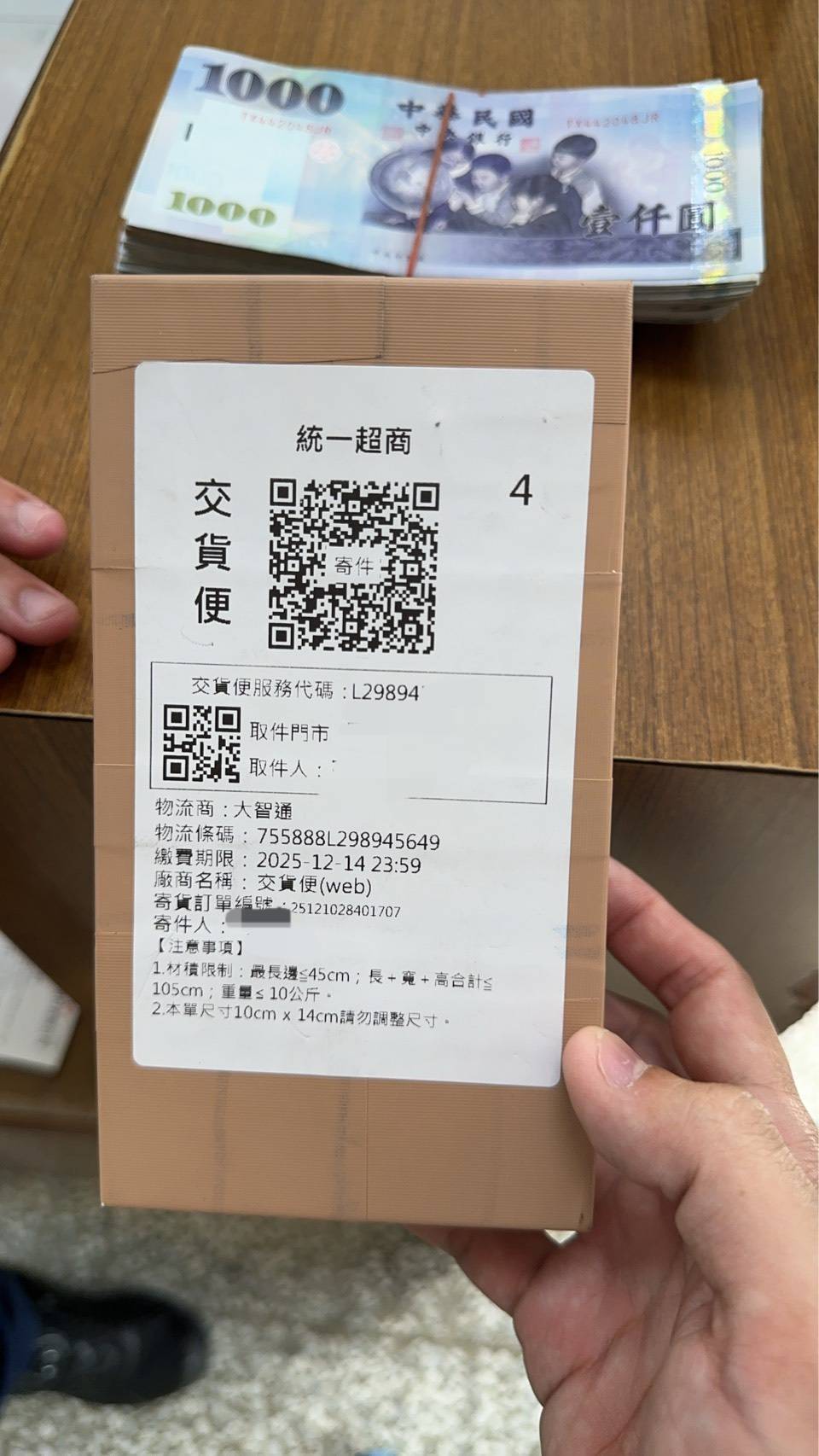 澎湖海巡署及警方攔下70歲老翁要寄給詐騙集團的20萬元現金包裹。翻攝畫面
