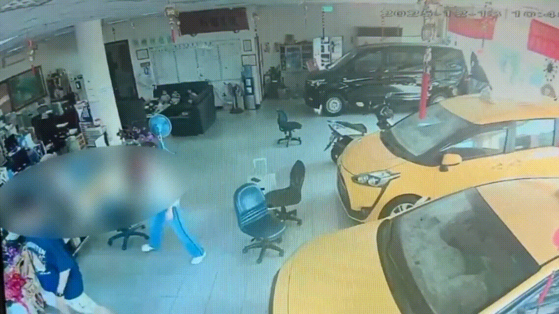當計程車衝進車行後,現場突然冒出濃煙,何男見狀立即拿起滅火器打開車門滅火,成功控制火勢。警方獲報趕抵時,火勢已撲滅,發現賴男臉部及手部有明顯燒燙傷,隨即將他送往國軍高雄總醫院急救。