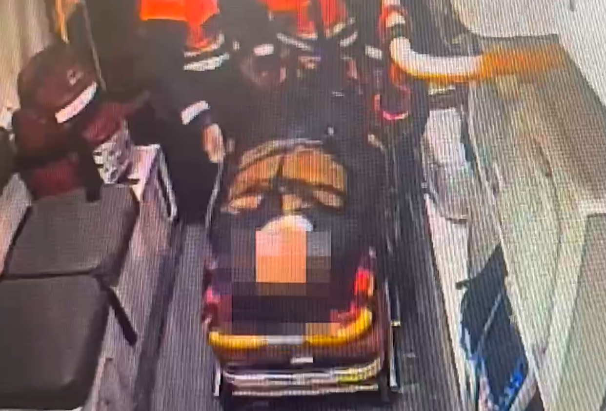 盧姓副站長送上救護車。翻攝畫面