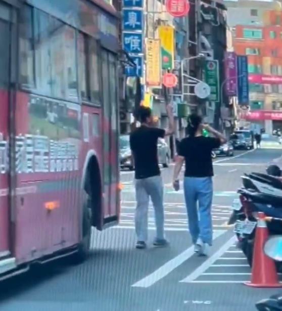 路人的頭被公車後照鏡撞到,隨即抱頭變腰。翻攝畫面