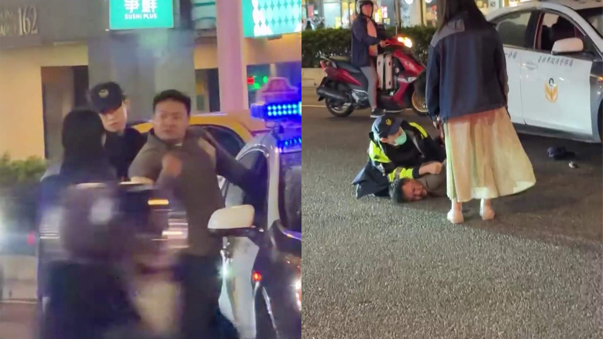 ▲北捷善導寺外隨機攻擊!1男靠近女路人「手拿攻擊物」、攔白車 警立即壓制(圖/Thread/smg_ol_2l 提供)