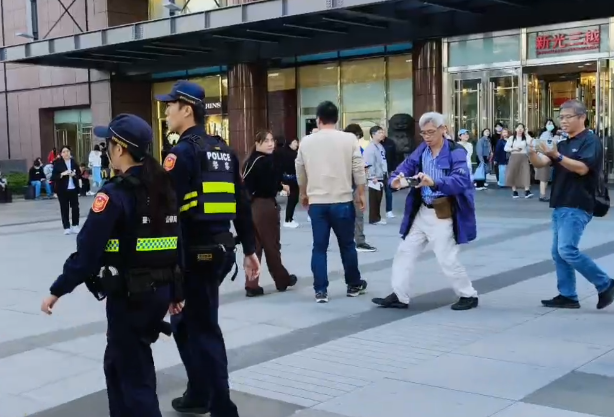 員警在台中新光三越週遭巡邏。翻攝畫面