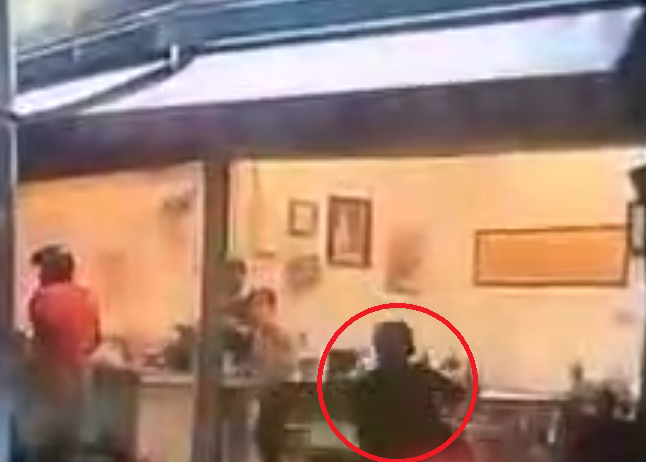 台東機車失控撞進小吃店(紅圈處)。翻攝畫面