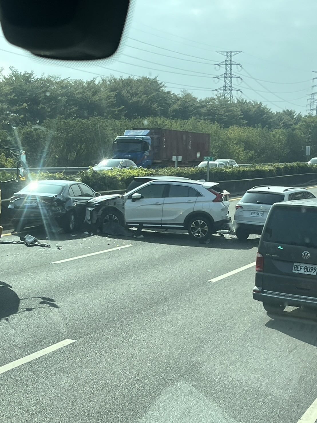 國道北斗路段連環車禍3人受傷。翻攝畫面