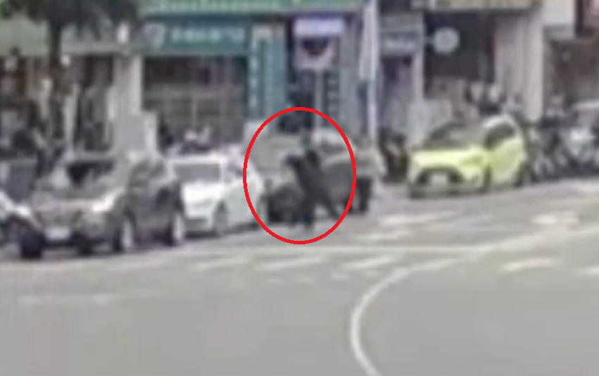 蘆洲兩名男子為爭停車位大打出手(紅圈處)。翻攝畫面
