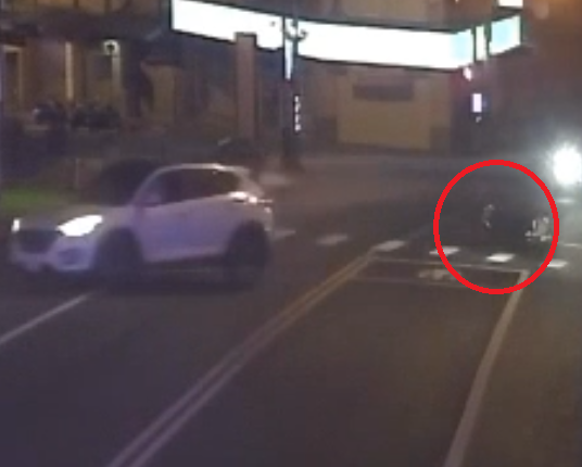白色自小客車酒駕撞倒機車(紅圈處)。翻攝畫面