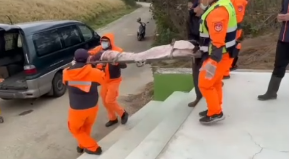 遺體搬離現場等候檢察官相驗調查。翻攝畫面
