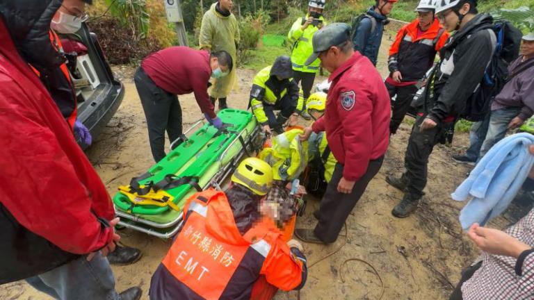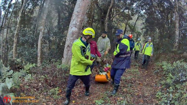 ▲搜救人員順利將長者護送下山並就醫觀察。(圖/記者蔣彤雲攝)