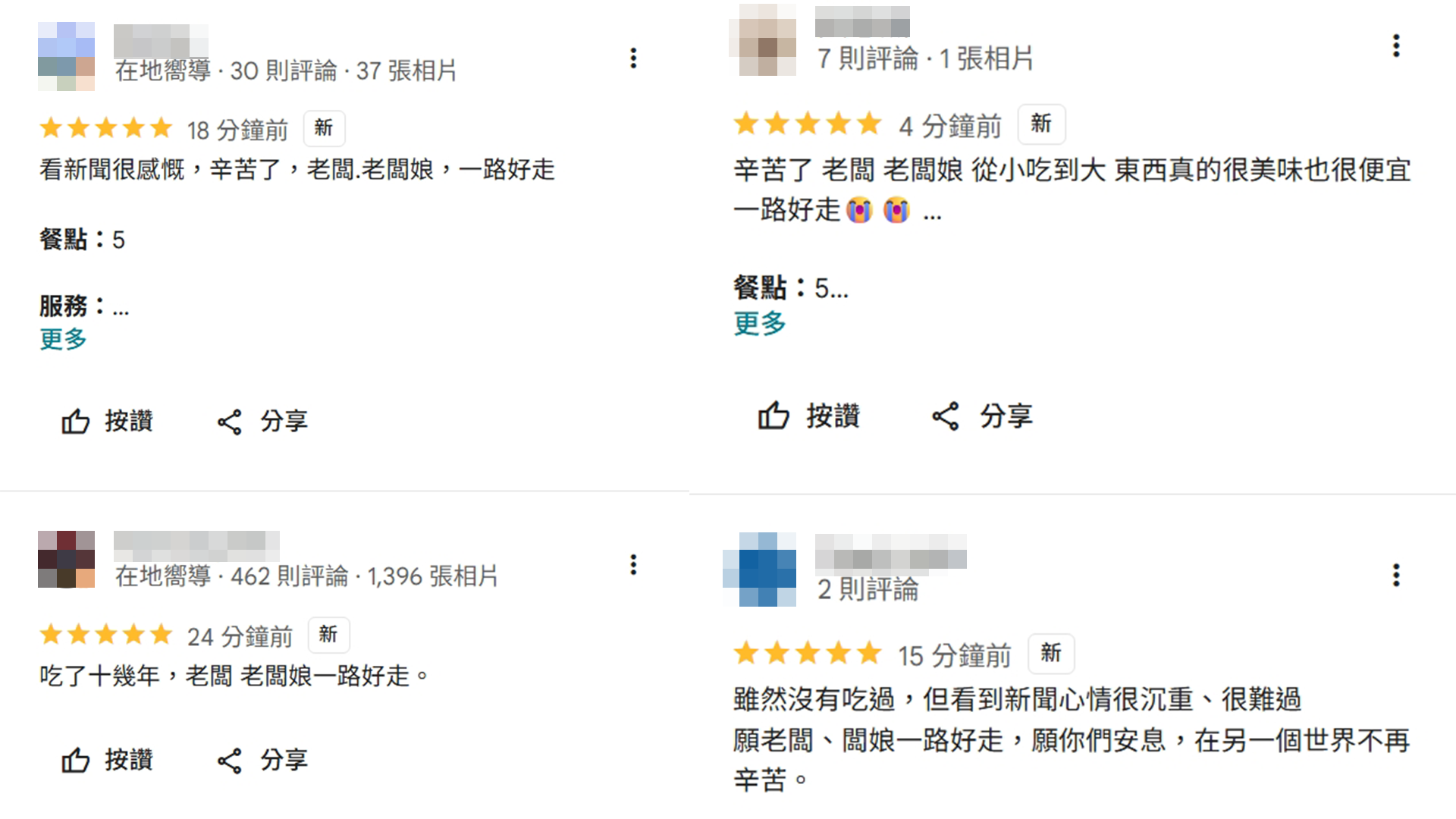 【賴傳媒、記者爆料網 王俊勝/新北報導】新北蘆洲近日發生雙屍命案,死者是一對在地賣蔥油餅多年的老夫妻,消息曝光後震驚地方,也讓不少從小吃到大的顧客心碎。事件傳開後,攤位在Google評論區湧入大量悼念留言,許多網友寫下「從小吃到大的味道」、「一路好走」、「R.I.P.」,不捨這個熟悉的味道可能就此成為回憶。