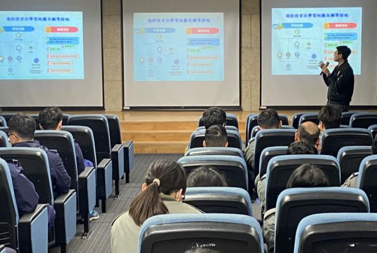 前進營區權益說明會由新竹榮服處向空軍第二聯隊官兵系統性說明輔導會現行各項輔導措施,依不同服役年資與生涯歷程階段,涵蓋就學、就業、職訓、就養、就醫及服務照顧等措施,協助官兵思考未來方向,透過面對面說明及互動,讓官兵對分級退撫制度與可運用之輔導會資源有更全面且具體的瞭解。