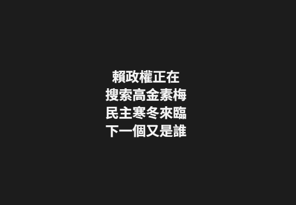 【Lai傳媒、記者爆料網/林千允/台北報導】國民黨立委羅智強今天上午突然在臉書爆料,前立委高金素梅疑似正遭到搜索,引發政壇譁然。羅智強直指「賴政權正在搜索高金素梅」,並痛批「民主寒冬來臨,下一個又是誰?」目前高金素梅辦公室尚未針對搜索傳聞發表正式聲明,搜索的詳細原因、執行單位、涉及案件等資訊都還不清楚。由於消息來源僅有羅智強臉書貼文,相關單位也都還沒正式說明,事件真實性和細節還需等待更多資訊。