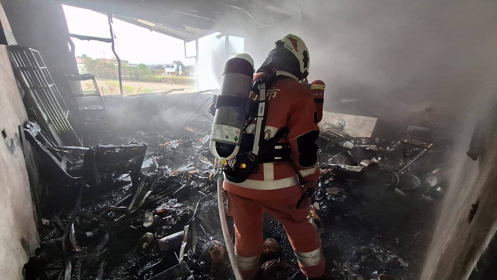 消防隊員進入火場內灌救。翻攝畫面