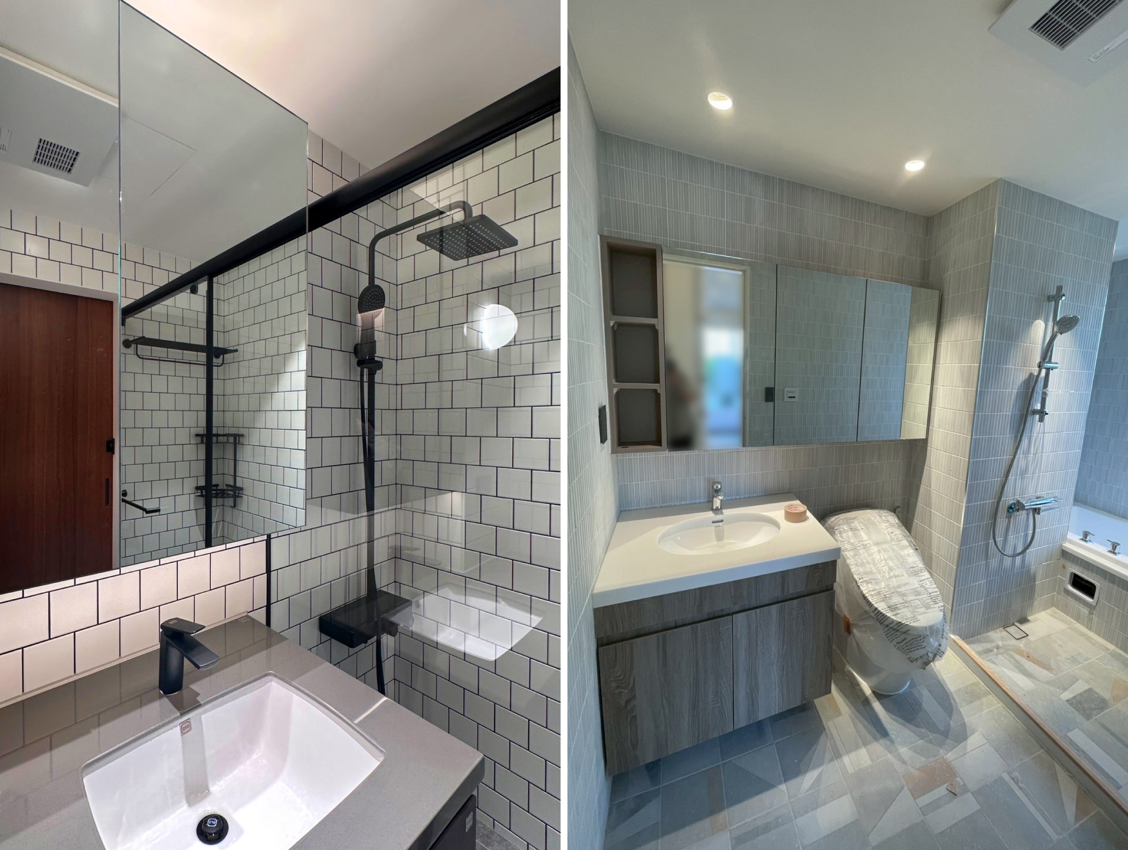 這股衛浴設計趨勢,在不同屋齡的住宅中展現出多元解方。據內政部統計,全台屋齡逾 30 年的老宅已突破 500 萬戶,其中老屋翻修最常面臨的是畸零空間與管線老舊。以汐止鄒小姐家中為例,中古屋常見的凹凸牆面與柱體往往限縮了臉盆與櫃體選擇性,導致市售規格的設備難以適配,若強行安裝不僅風格突兀,亦犧牲掉寶貴的收納空間。