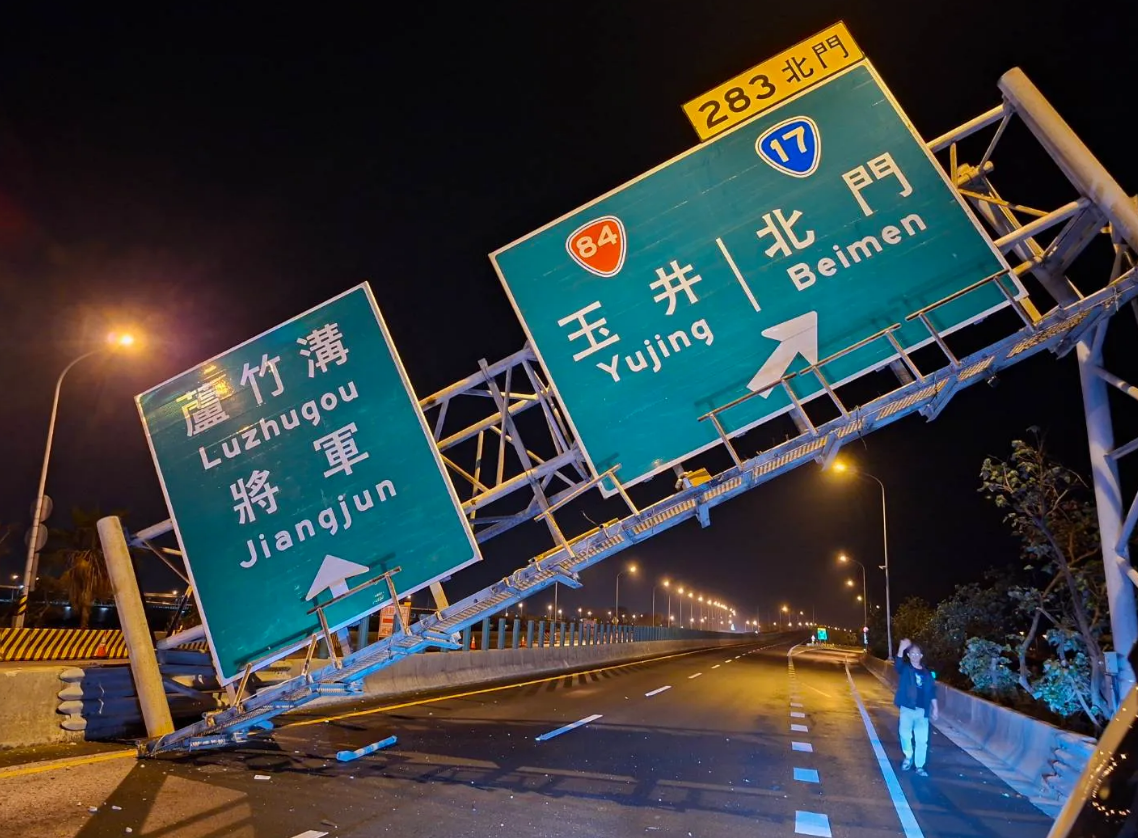 【Lai傳媒、記者爆料網/周庭慶/台南報導】台61線南下283K北門路段標誌門架今(28)日凌晨疑遭大貨車擦撞導致牌面倒塌南下阻斷,短期無法恢復功能,該標誌為台84系統交流道行動點標誌,為防範用路人錯失下交流道,擬三階段復原,短期以豎立式珍珠板印刷臨時標誌牌面,預計明(3月1日)下午17時完成,中期以豎立式鋁板標誌牌面,預計3月6日下午完成,長期以門架式標誌牌面恢復。