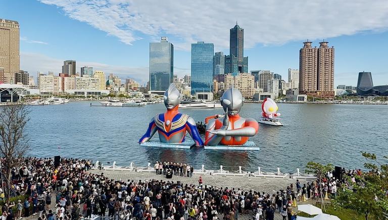 高閔琳說明,「2026高雄冬日遊樂園」閉幕日,陸海空驚喜彩蛋盡出;包括2米、3米、8米的Q版初代超人力霸王,還有15米擬真版本超人力霸王兩代合體同台,以及碼頭區多個主題裝置。其中,觀光局與國立科學工藝博物館合作推出的「超人力霸王飛行科普小學堂」今早在科工館北館大廳登場,以無人機科技演示2米Q版超人力霸王飛行秀,六場次皆吸引滿滿親子家庭參與,現場互動熱烈;而備受粉絲喜愛的8米Q版超人力霸王除上午於愛河灣巡航,閉幕時也在天候許可的條件下再次現身,與兩代超人會合、共同於愛河灣巡演,成為閉幕日最療癒的驚喜彩蛋。