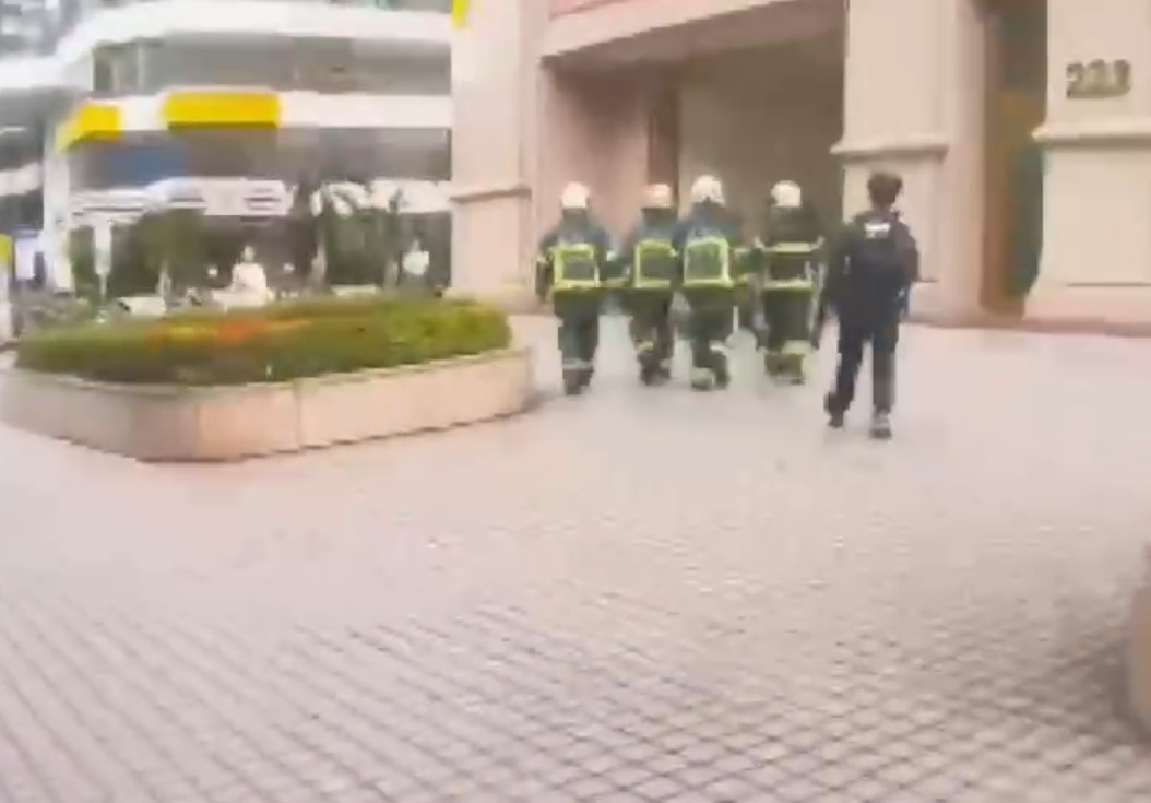 大批警消人員趕往北捷行天宮站。翻攝畫面