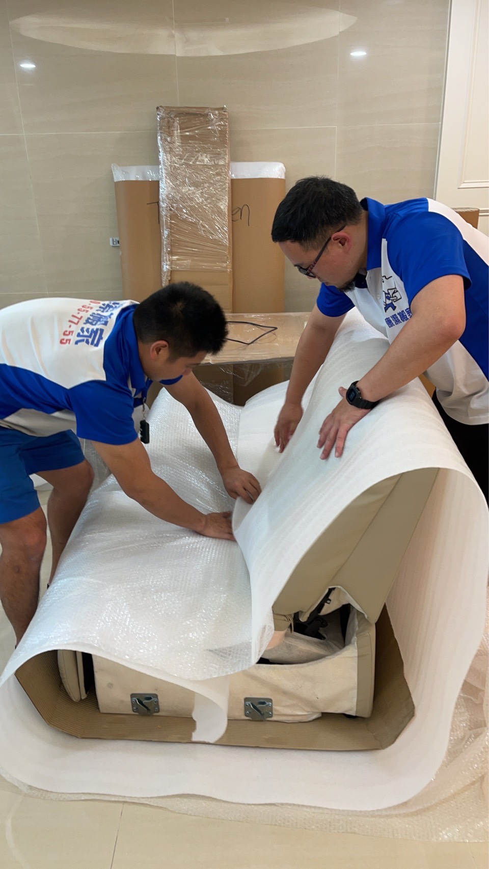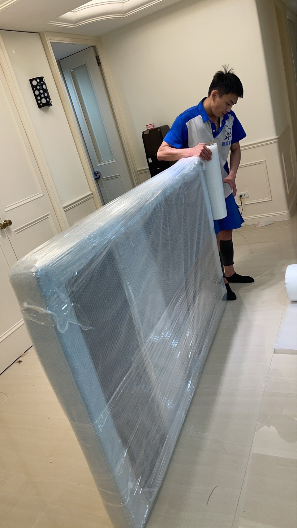 康潔搬家團隊以氣泡布細心包覆大型家具,透過完整防護降低搬運過程中的碰撞與損傷風險。(康潔搬家提供)