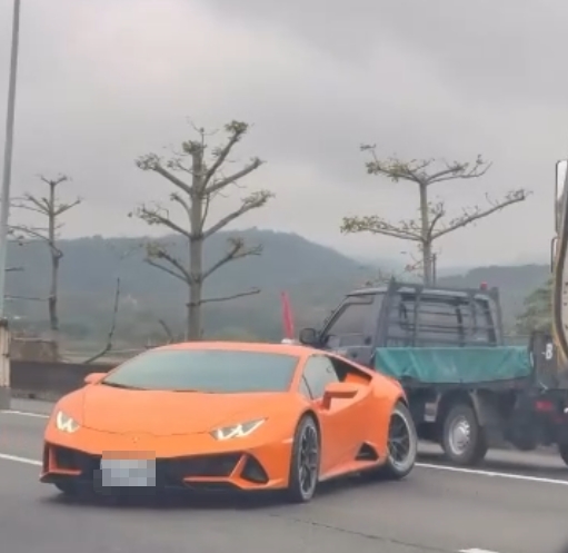 藍寶堅尼小牛國道自撞護欄打橫。翻攝畫面