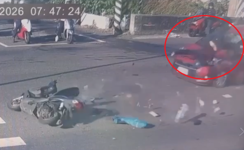 機車被撞倒地。翻攝畫面