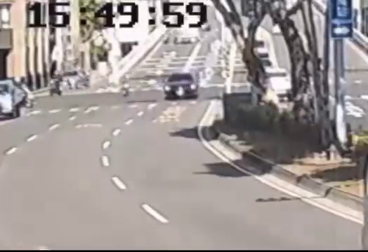 ▲騎士疑似先壓過異物造成機車彈跳而摔向一旁的砂石車遭壓(圖/民眾提供)