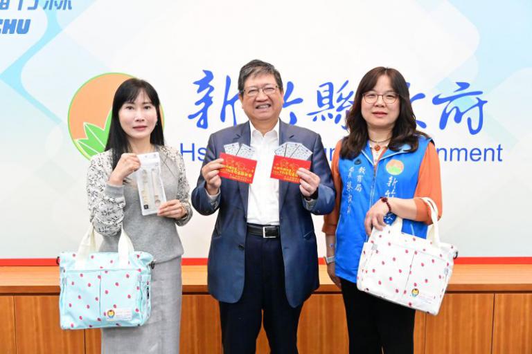 ▲新竹縣長楊文科為全縣國小、幼兒園兒童,準備超商禮物卡作為兒童節禮物。(圖/記者張建奎攝)
