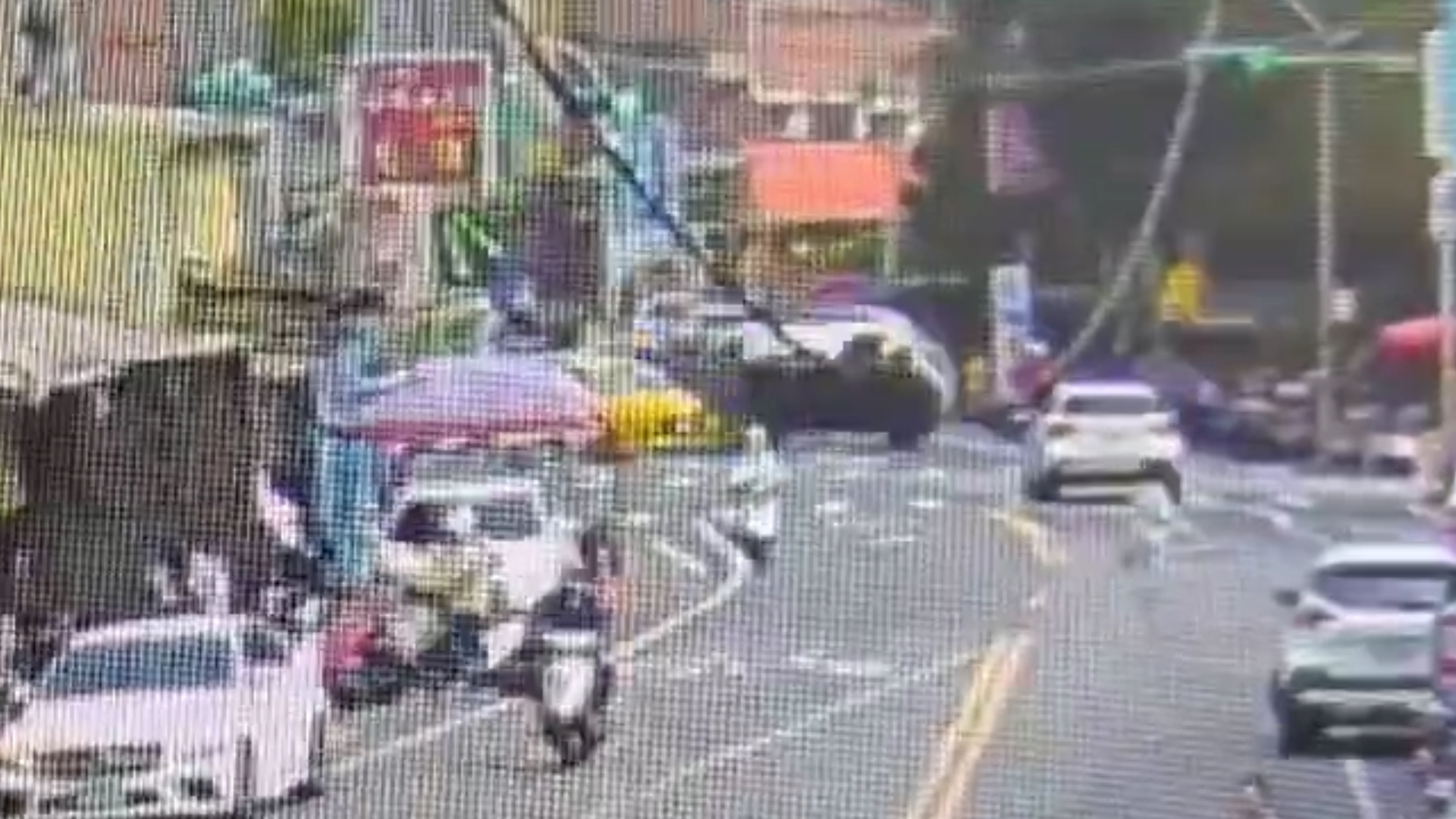車禍發生當下,一旁熱心民眾見狀紛紛衝上前自發性組成救援隊。眾人合力將沉重的速霸陸休旅車緩緩推翻回正,成功協助受困車內的王翁順利脫身。(畫面翻攝自Threads@jimmy_sun2145)
