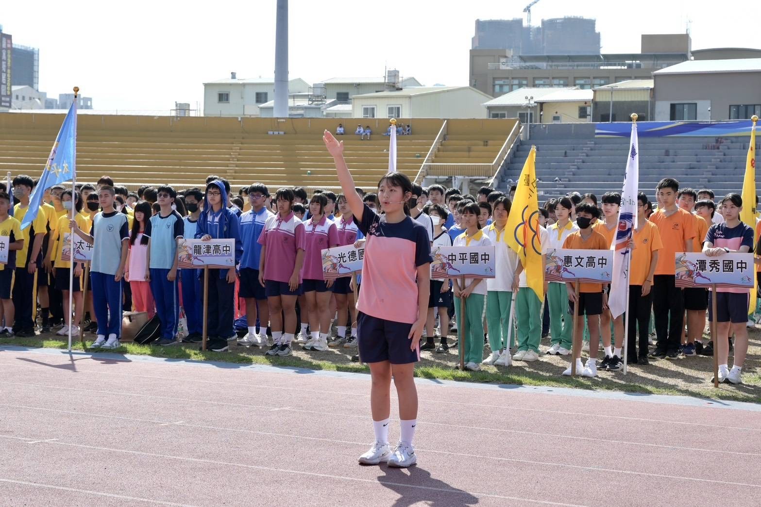 ▲運動員宣誓-宣誓代表潭秀國中周鉯芯同學。(圖/台中市政府提供)
